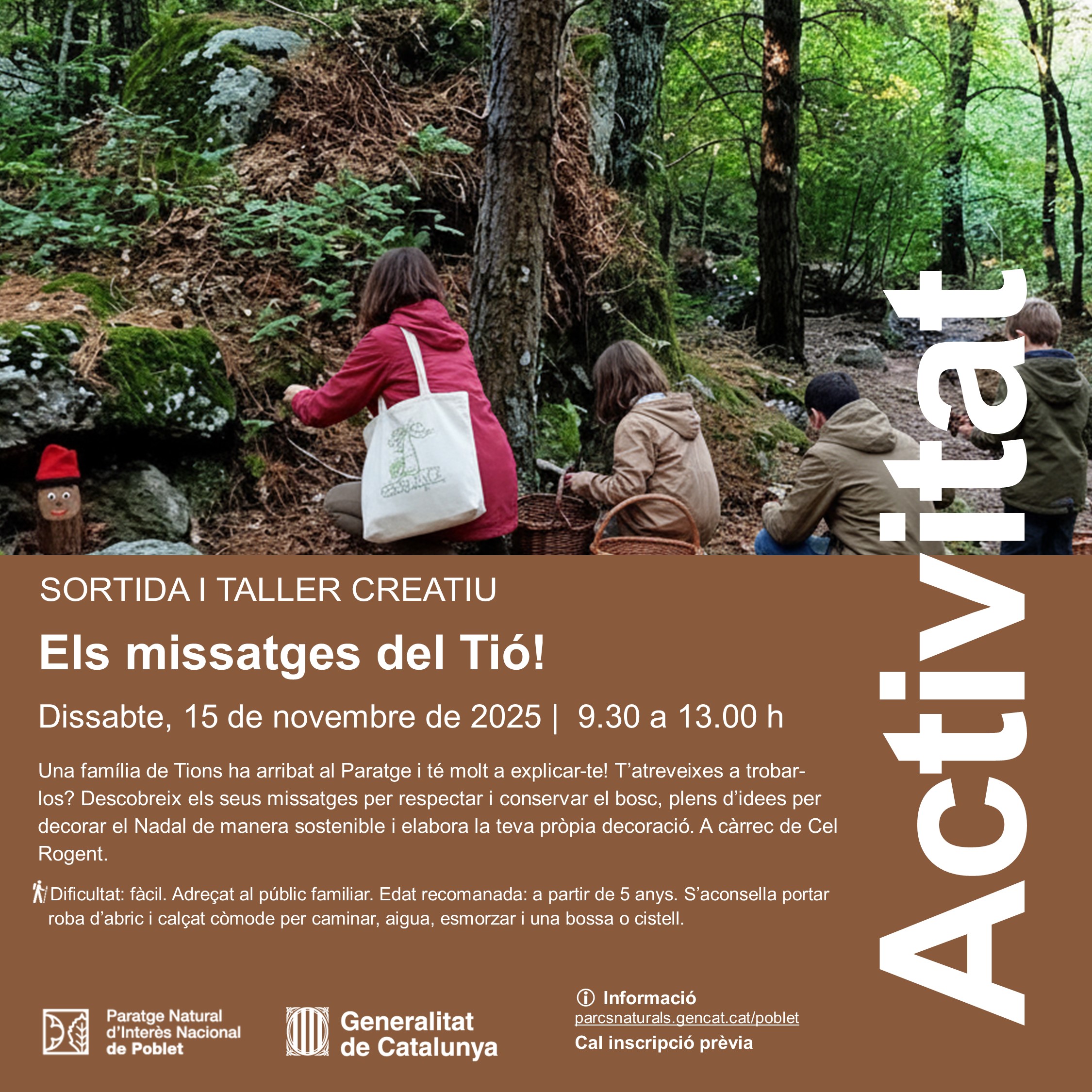 Propera activitat del PNIN de Poblet, sortida i taller creatiu “Els missatges del Tió!”