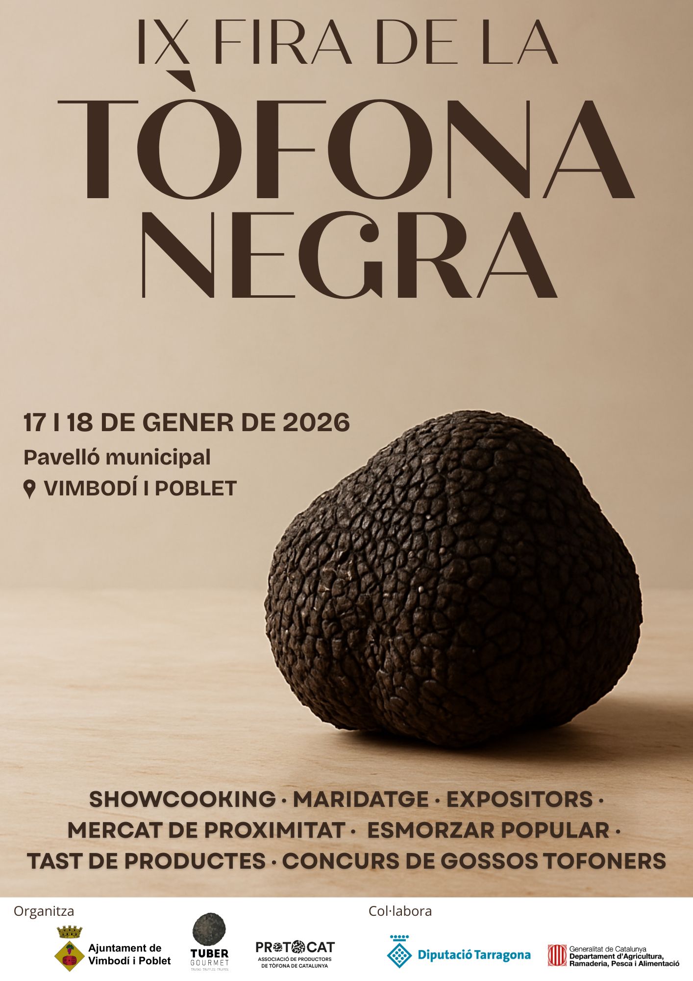 El cap de setmana del 17 i 18 de gener de 2026, se celebrarà una nova edició de la Fira de la Tòfona Negra a la zona poliesportiva de Vimbodí i Poblet.