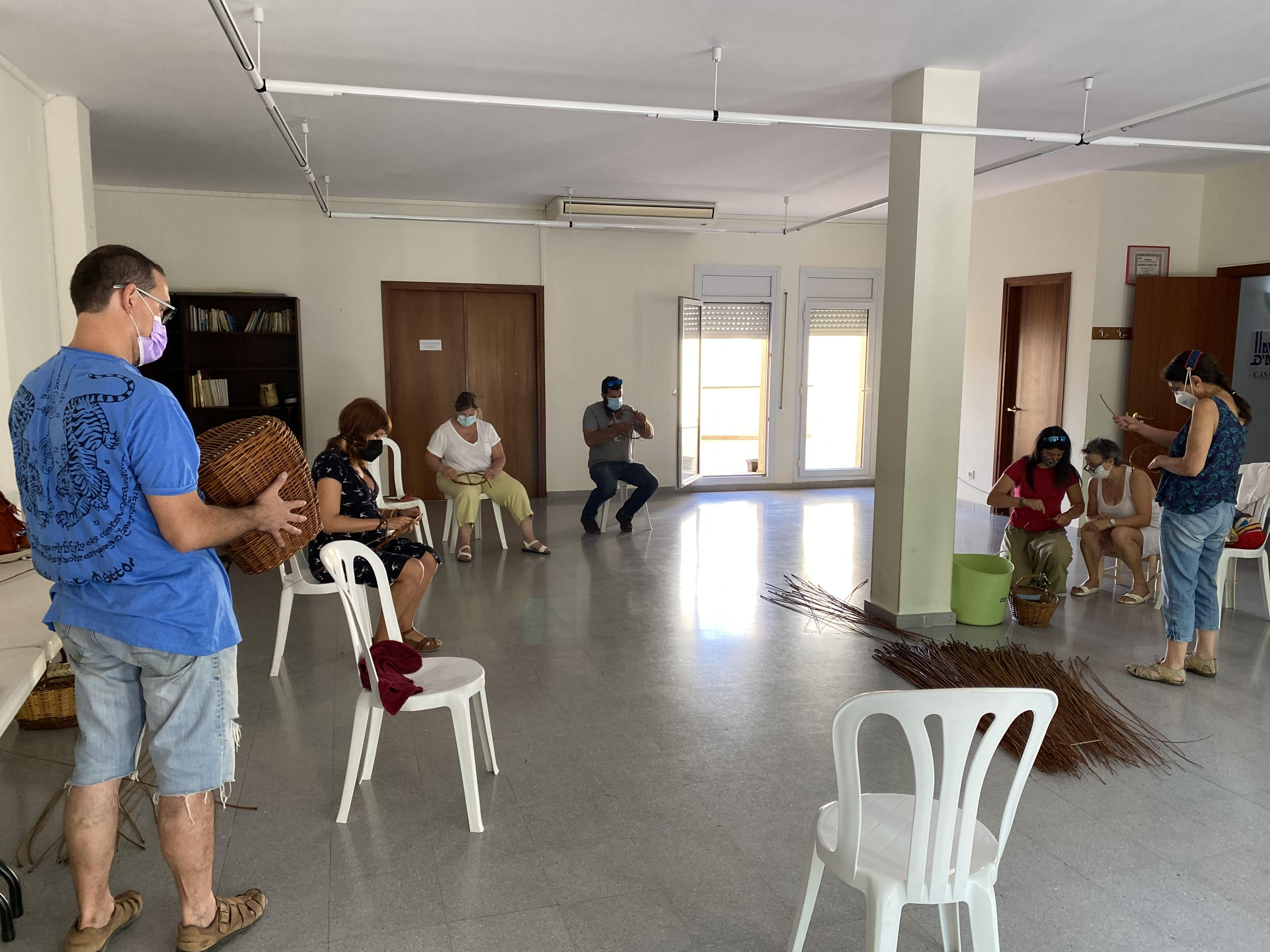 Els participants dels Tallers amb Sarga elaboren una cistella de vímet