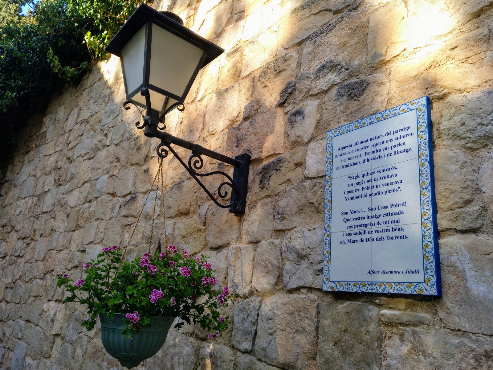 Una poesia al·legòrica a la Mare de Déu dels Torrents, escrita pel promotor cultural i cronista local vimbodinenc Alfons Alsamora i Jiballí, presideix des del dissabte dia 18 la plaça de les Moreres de l’ermita de la copatrona de Vimbodí i Poblet. El mateix autor ha destapat la placa amb el poema, en un acte celebrat aquest mateix dia a la tarda i inclòs al programa previ de les Festes Quinquennals dels Torrents.