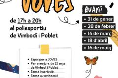 L’Ajuntament de Vimbodí i Poblet reemprèn el projecte Tardes joves. Passem la tarda, un espai on els joves a partir de 12 anys poden fer esport, jugar, xerrar, crear... De fet, són els mateixos joves els qui decideixen què fer durant la tarda i proposen què els agradaria fer el mes següent.