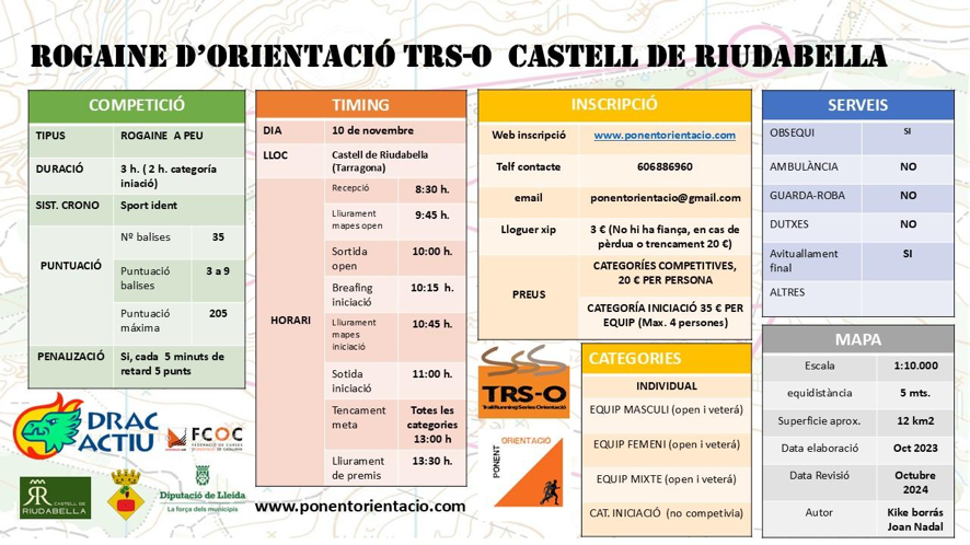 L’empresa Drac Actiu organitza l’última rogaine d’orientació TRS-O 2024 Drac Actiu- Castell de Riudabella aquest diumenge 10 de novembre.