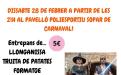 Un cop finalitzada la rua, a les 21 h, se celebrarà un sopar popular a càrrec del grup de grallers, amb venda anticipada de tiquets. Tot seguit, hi haurà ball amb l’orquestra Millenium. La festa continuarà durant la nit amb una nit de DJ’s al Pavelló Municipal, de 00.00 h a 6.00 h, amb les actuacions de Jordi END, DJ Laro i YXOR.